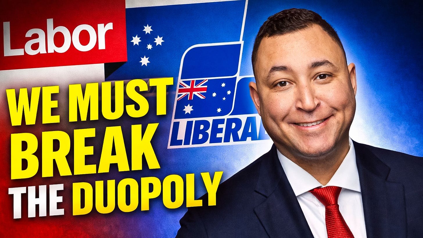 Join a political party, give them your effort and energy, participate in pre selection of candidates, and put your hand up to run. This is how we break up the duopoly.