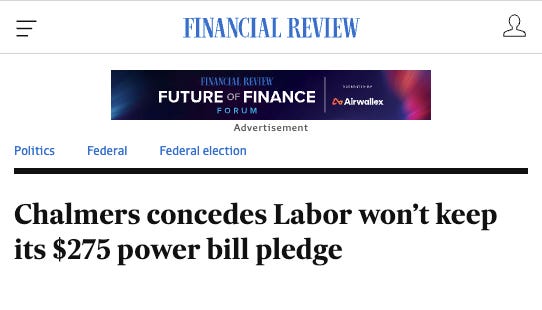 Forget the government’s promise that Australia will become a ‘renewable energy superpower’. They can’t even deliver a $275 electricity bill reduction. If it wasn’t so serious it would be hilarious.