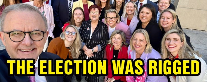 Not with fake ballots or hacked machines, but with captured media, Marxist schools, mass migration and a cowardly “opposition” that secretly prefers Labor in charge.