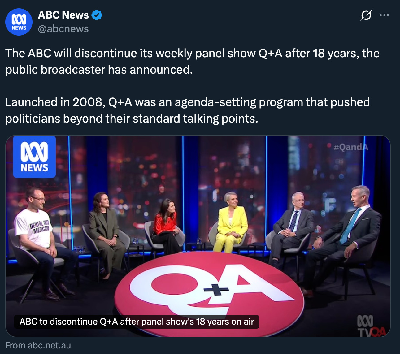 Q+A didn’t just fail - it betrayed its purpose. Rather than foster real debate, it tried to steer every discussion toward a predetermined “progressive” conclusion. Australians could see through it, and they walked away.