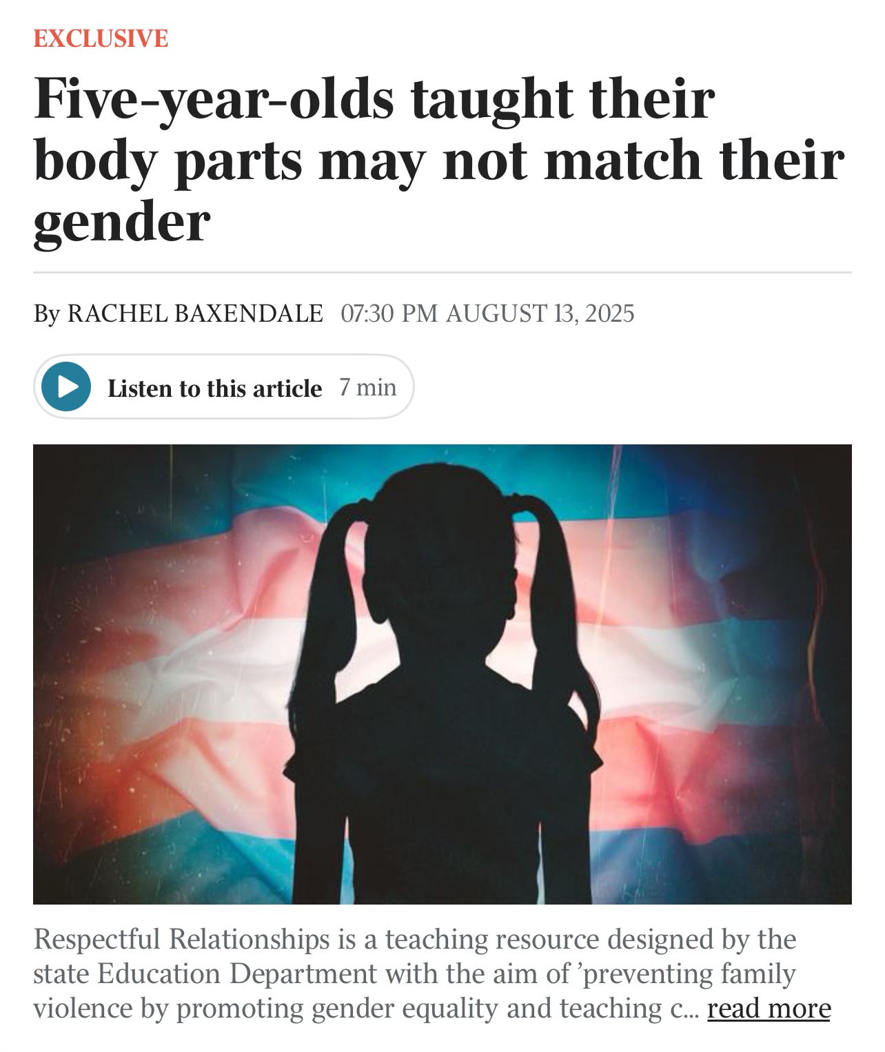 When the state teaches five year olds to doubt their own bodies, it’s not education, it’s grooming in plain sight.